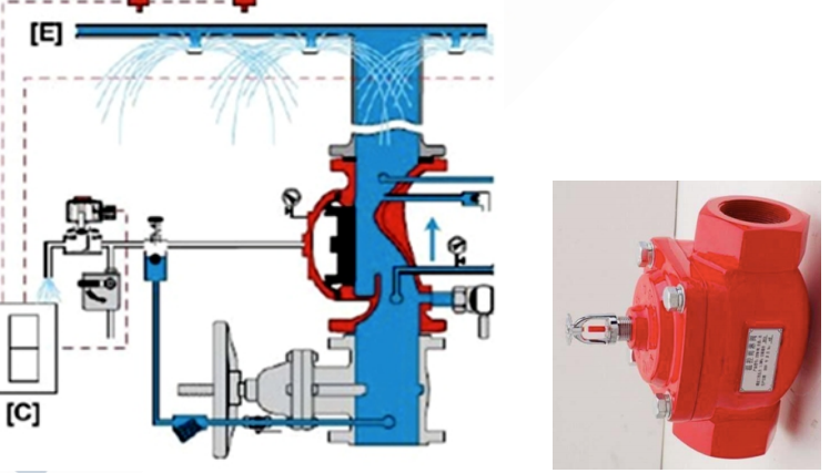 自動噴水滅火系統(tǒng)應(yīng)根據(jù)不同的系統(tǒng)形式設(shè)置相應(yīng)的報警閥組。保護室內(nèi)鋼屋架等建筑構(gòu)件的閉式系統(tǒng),應(yīng)設(shè)置獨立的報警閥組;水幕系統(tǒng)應(yīng)設(shè)置獨立的報警閥組或感溫雨淋閥組。
