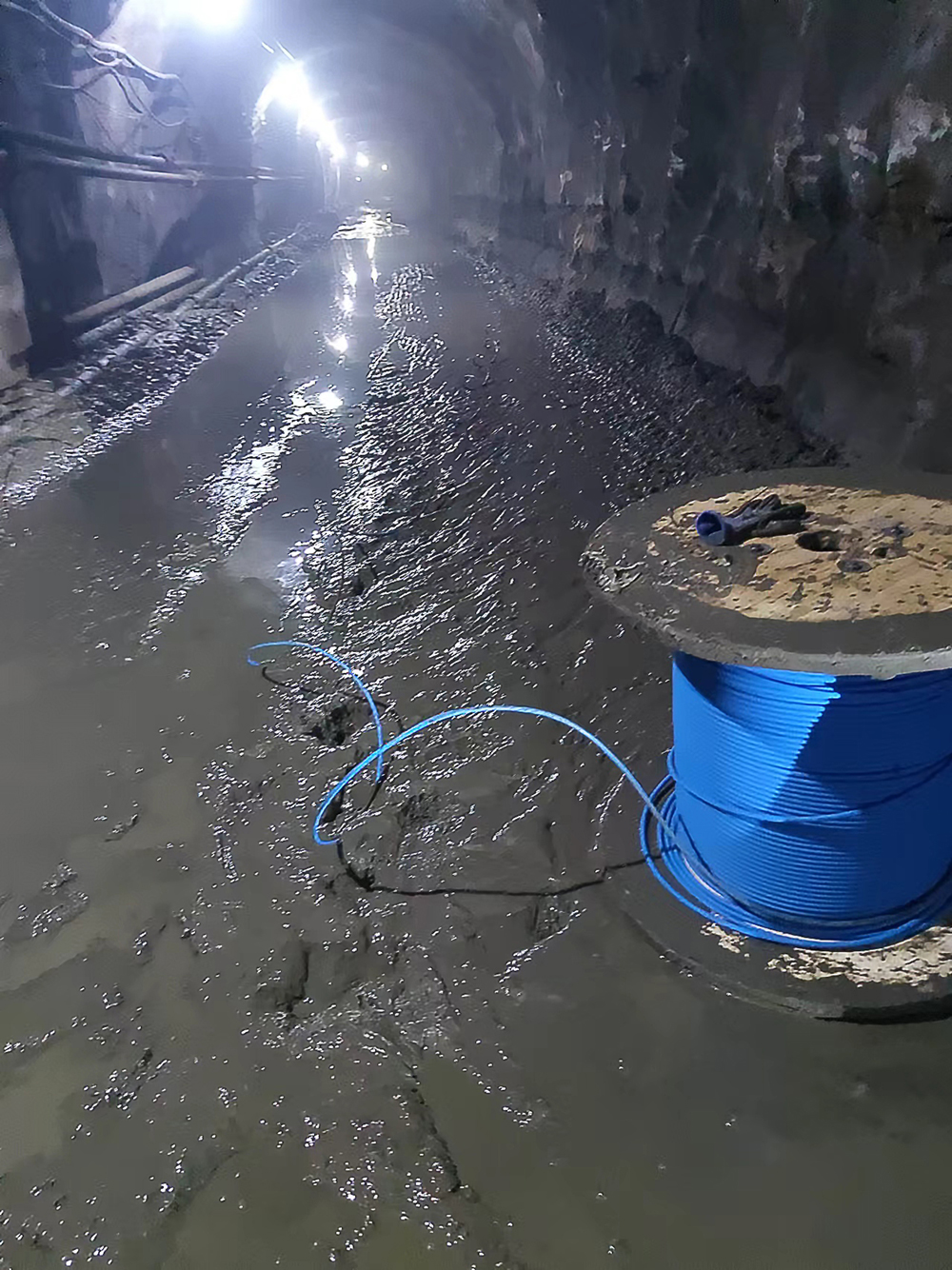 礦下泥濘巷道昏暗潮濕,待鋪設(shè)的光纜如同生命線,承載著礦區(qū)的通信希望。巷道閃爍的燈光猶如藍(lán)動(dòng)人堅(jiān)定的目光,為藍(lán)動(dòng)的發(fā)展勇往直前。